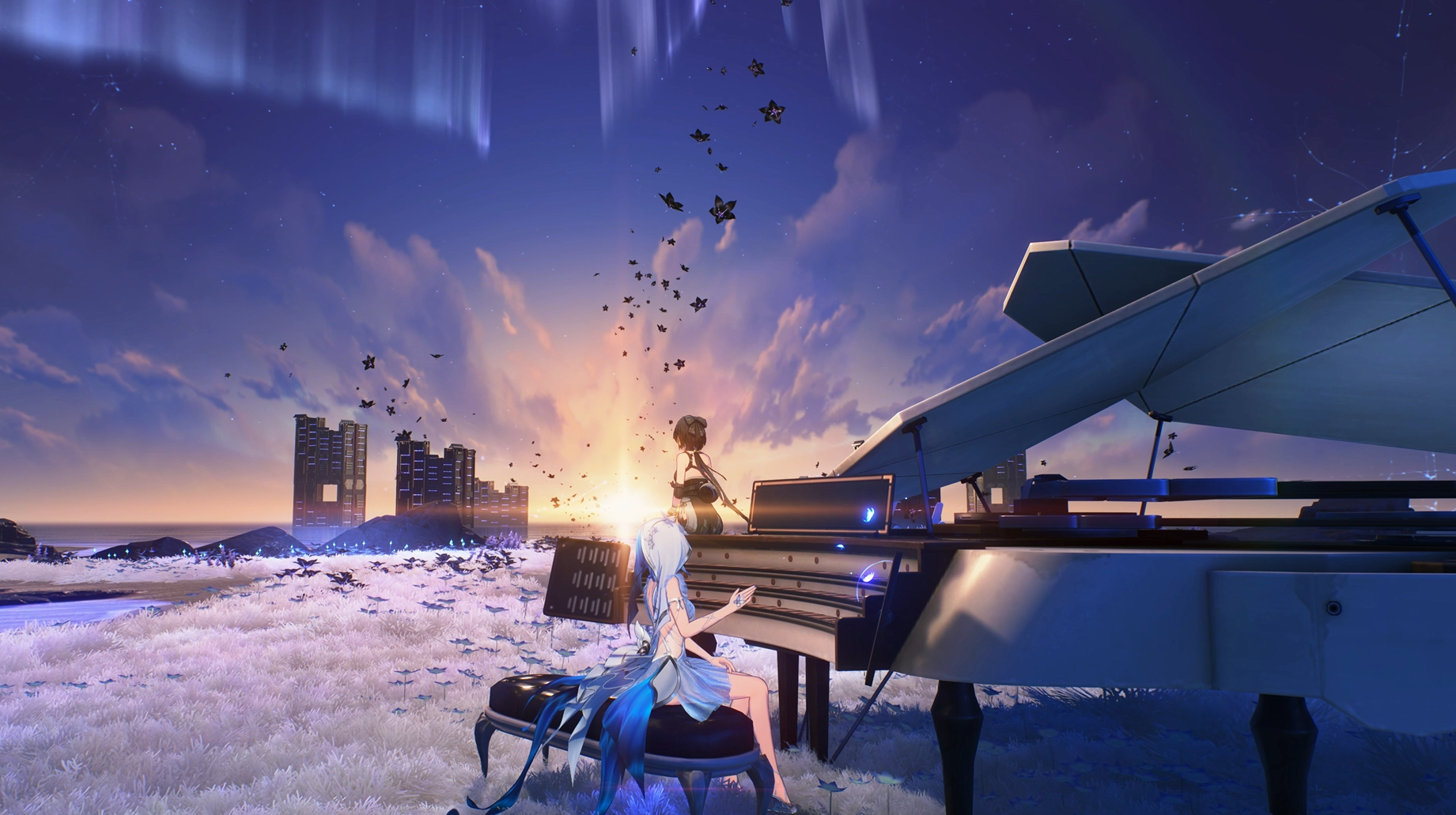 명조 인게임 내에서 직접 들어갈 수 있는 장소이고, 설정상 최고 관리자 권한이 있는 파수인과 방랑자만이 들어갈 수 있는 공간이라 둘만의 특별한 공간이라고 할 수 있는 곳에서, 원래는 방랑자가 가르쳐주었던 피아노를 파수인이 방랑자에게 들려주는 모습이 매우 인상적인 파수인 바탕화면입니다. 인게임 내에서 직접 갈 수 있다는 점에서 특별함을 느낄 수 있고, 인게임 화면임에도 퀄리티가 엄청나다는 점에서 추천드리는 배경화면입니다.