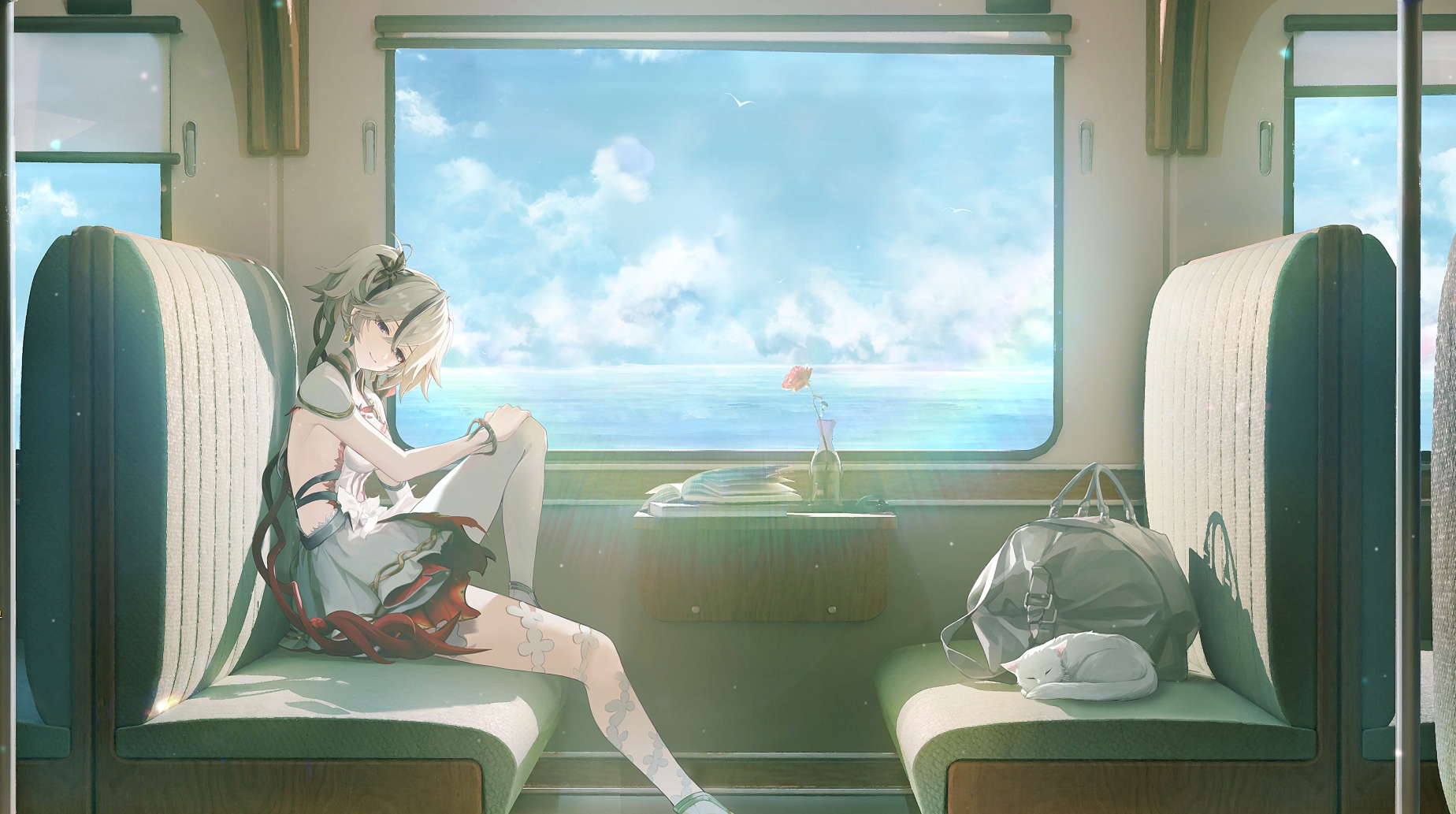 열차 안에서 밖에 맑고 푸른 바다가 보이는 유리창과 큰 창문으로 들어오는 햇빛에 앉은 카멜리아의 모습이 예쁜 일러스트입니다. 아마 공식 라운지에서 올라왔던 일러스트인 것으로 기억하는데, 이렇게 라이브 2D로 움직이는 영상이 따로 업로드되었었는지는 기억이 잘 안 나네요. 누군가의 창작 작품일 수도 있습니다. 아무튼 작품이 굉장히 조화롭고 아름다운 풍경과 함께 배경으로 해두기에 딱인 것 같습니다.